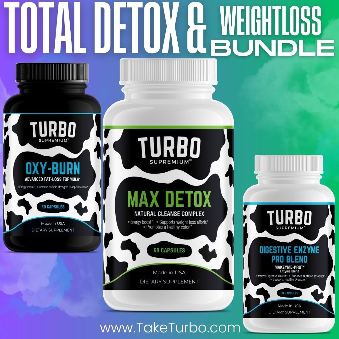 Introducing the Turbo Total Detox & Weightloss Bundle: a comprehensive package combining three powerful supplements for your overall well-being. This bundle includes Max Detox, Oxy Burn, and Digestive Enzyme Pro, each targeting different aspects of your health journey.